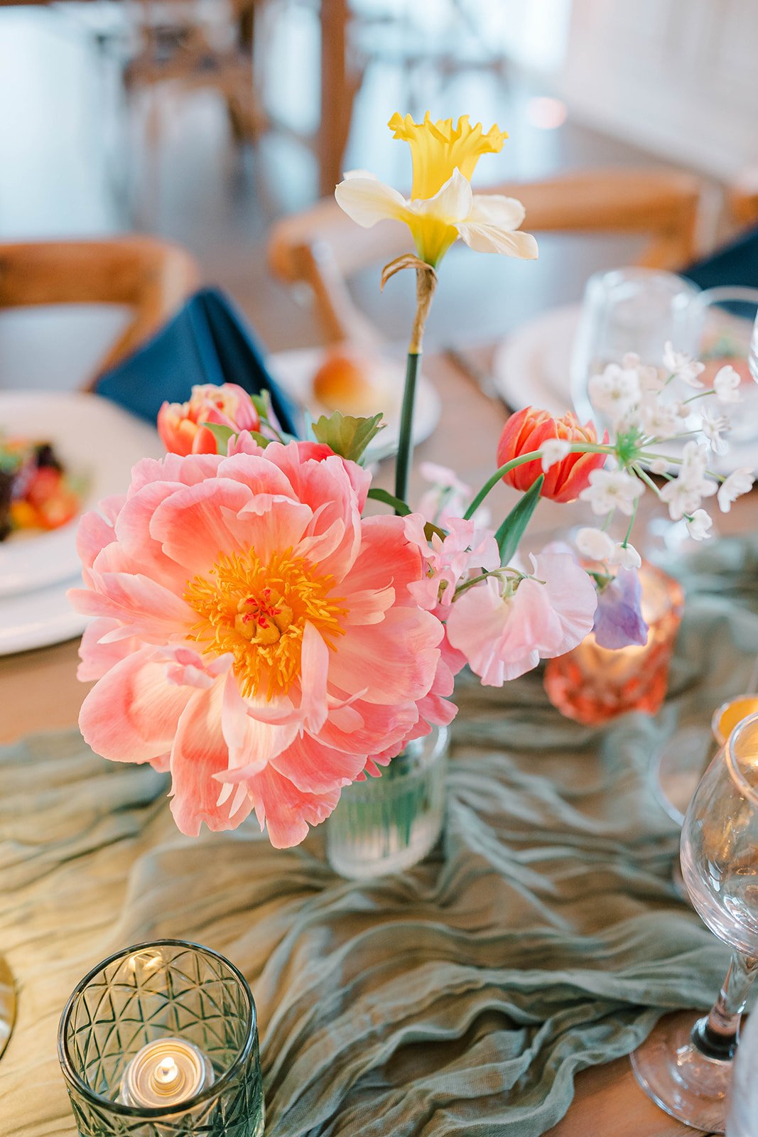 Spring weddings at Bear Brook Valley in New Jersey are all about color, freshness, and seasonality. For this April celebration, we showcased the best blooms of the season, like daffodils, peonies, and sweet pea to create arrangements that felt joyful, elevated, and spring.